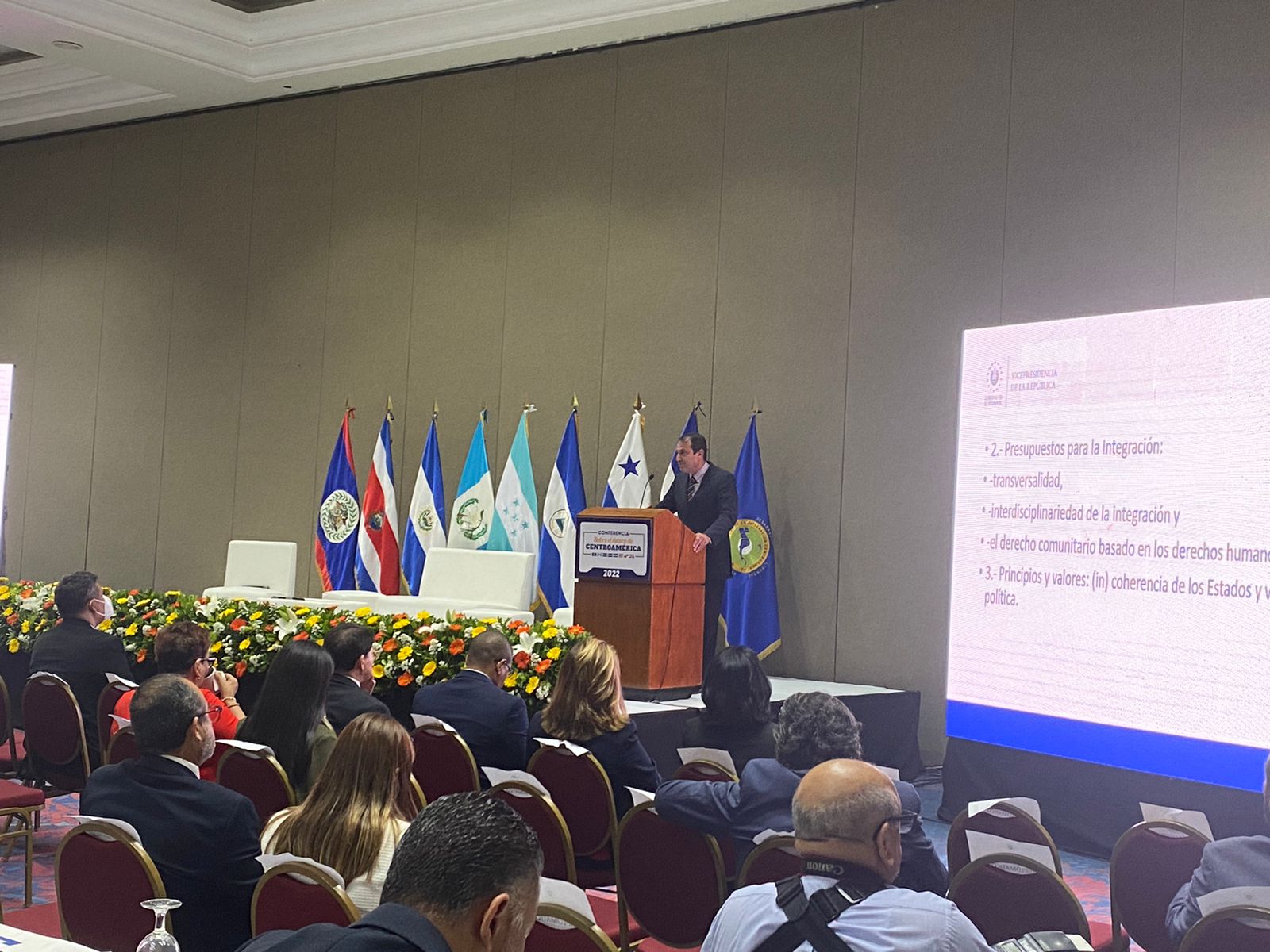 El evento contó con la participación del Vicepresidente de la República de El Salvador, Señor Félix Ulloa; Secretario General del SICA, Señor Werner Vargas; así como honorables representantes de los países SICA; funcionarios constitucionalistas y conferencistas entre ellos del Banco Centroamericano de Integración Económica (BCIE); Secretaría de la Integración Económica Centroamericana (SIECA); Instituto Centroamericano para la Integración Económica (ICI); entre otros.